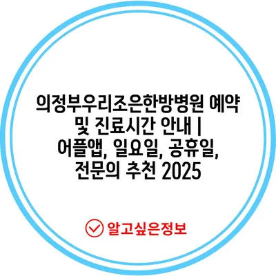 의정부우리조은한방병원 예약 및 진료시간 공지 | 어플앱, 일요일, 공휴일, 전연락 추천 2025 에 대해 자주 묻는 질문 TOP 5