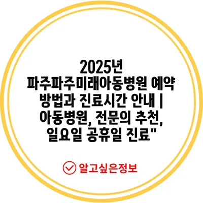 2025년 파주파주미래아동병원 예약 방법과 진료시간 공지 | 아동병원, 전연락 추천, 일요일 공휴일 진료” 에 대해 자주 묻는 질문 TOP 5