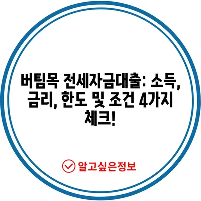 버팀목 전세자금대출: 소득, 금리, 한도 및 조건 4가지 체크!