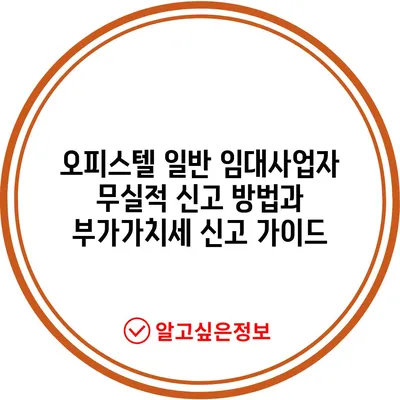 오피스텔 일반 임대사업자 무실적 신고 방법과 부가가치세 신고 가이드