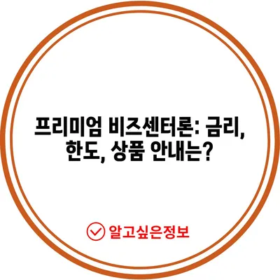 프리미엄 비즈센터론: 금리, 한도, 상품 안내는?