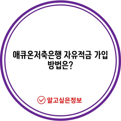 💡 애큐온저축은행의 자유적금 가입 방법을 상세히 알아보세요. 💡