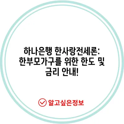 하나은행 한사랑전세론: 한부모가구를 위한 한도 및 금리 안내!