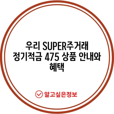 우리 SUPER주거래 정기적금 475 상품 안내와 혜택