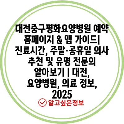 대전중구평화요양병원 예약 홈페이지 & 앱 설명서| 진료시간, 주말·공휴일 의사 추천 및 유명 전연락 알아보기 | 대전, 요양병원, 의료 정보, 2025 에 대해 자주 묻는 질문 TOP 5