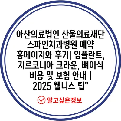아산의료법인 산울의료재단 스파인치과병원 예약 홈페이지와 후기| 임플란트, 지르코니아 크라운, 뼈이식 비용 및 보험 공지 | 2025 웰니스 팁” 에 대해 자주 묻는 질문 TOP 5