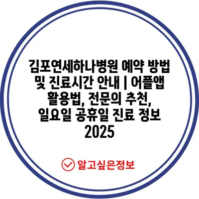김포연세하나병원 예약 방법 및 진료시간 공지 | 어플앱 활용법, 전연락 추천, 일요일 공휴일 진료 정보 2025에 대해 알아보겠습니다.