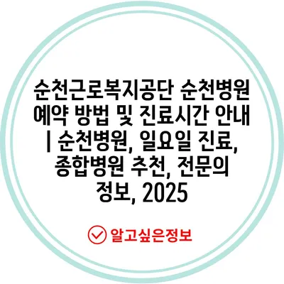 순천근로복지공단 순천병원 예약 방법 및 진료시간 공지 | 순천병원, 일요일 진료, 종합병원 추천, 전연락 정보, 2025 에 대해 자주 묻는 질문 TOP 5