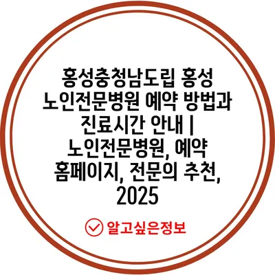 ✅ 홍성 노인전문병원의 진료시간과 예약 방법을 자세히 알아보세요.