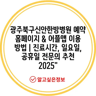 광주북구신안한방병원 예약 홈페이지 & 어플앱 이용 방법 | 진료시간, 일요일, 공휴일 전연락 추천 2025″ 에 대해 자주 묻는 질문 TOP 5