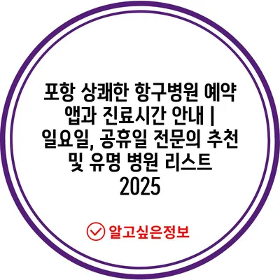 포항 상쾌한 항구병원 예약 앱과 진료시간 공지 | 일요일, 공휴일 전연락 추천 및 유명 병원 리스트 2025는 여러분의 건강 관리를 위한 필수 정보입니다.