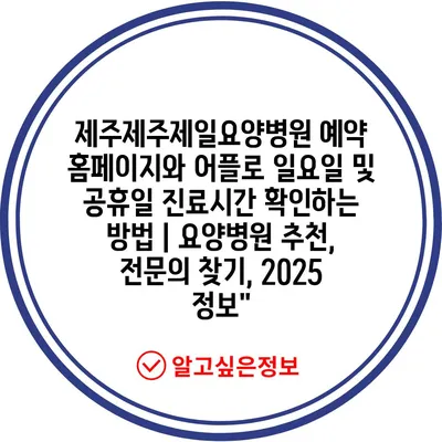 제주제주제일요양병원 예약 홈페이지와 어플로 일요일 및 공휴일 진료시간 확인하는 방법 | 요양병원 추천, 전연락 찾기, 2025 정보에 대해 자주 묻는 질문 TOP 5