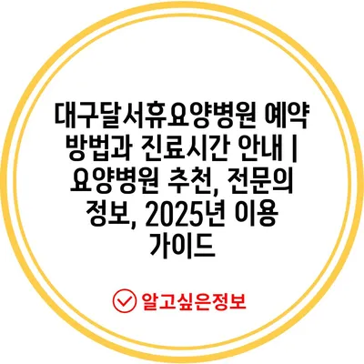 ✅ 대구달서휴요양병원 예약 방법과 진료시간을 지금 바로 알아보세요!