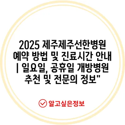 2025 제주제주선한병원 예약 방법 및 진료시간 공지 | 일요일, 공휴일 개방병원 추천 및 전연락 정보에 대해 자주 묻는 질문 TOP 5