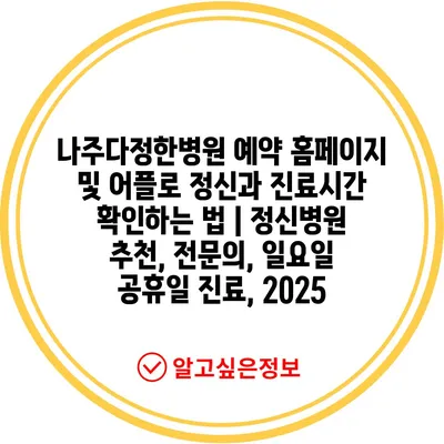 나주다정한병원 예약 홈페이지 및 어플로 정신과 진료시간 확인하는 법 | 정신병원 추천, 전연락, 일요일 공휴일 진료, 2025 에 대해 자주 묻는 질문 TOP 5