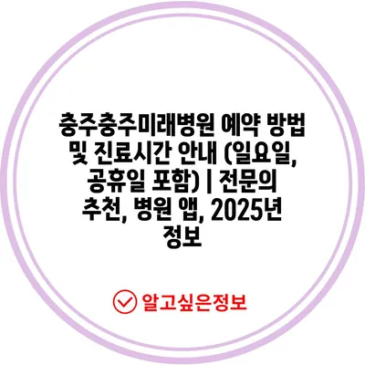 충주충주미래병원 예약 방법 및 진료시간 공지 (일요일, 공휴일 포함) | 전연락 추천, 병원 앱, 2025년 정보 에 대해 자주 묻는 질문 TOP 5