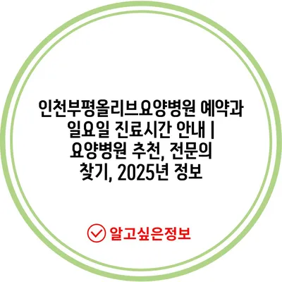 ✅ 인천부평올리브요양병원 예약 방법과 일요일 진료시간을 자세히 알아보세요.