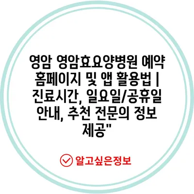 ✅ 영암효요양병원의 편리한 예약 방법을 알아보세요.