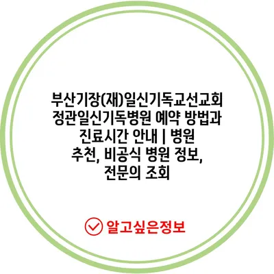 ✅ 부산기장(재)일신기독병원의 예약 방법과 진료시간을 확인해 보세요.