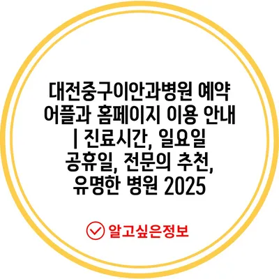 대전중구이안과병원 예약 어플과 홈페이지 이용 공지 | 진료시간, 일요일 공휴일, 전연락 추천, 유명한 병원 2025 에 대해 자주 묻는 질문 TOP 5