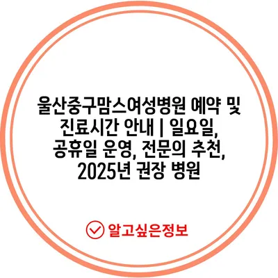 울산중구맘스여성병원 예약 및 진료시간 안내 | 일요일, 공휴일 운영, 전문의 추천, 2025년 권장 병원