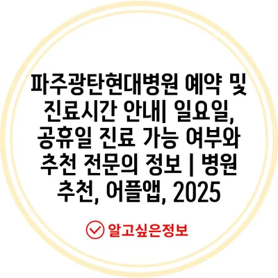 파주광탄현대병원 예약 및 진료시간 공지| 일요일, 공휴일 진료 가능 여부와 추천 전연락 정보 | 병원 추천, 어플앱, 2025 에 대해 자주 묻는 질문 TOP 5