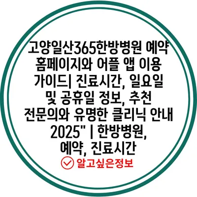 고양일산365한방병원 예약 홈페이지와 어플 앱 이용 설명서| 진료시간, 일요일 및 공휴일 정보, 추천 전연락와 유명한 클리닉 공지 2025″ | 한방병원, 예약, 진료시간 에 대해 자주 묻는 질문 TOP 5