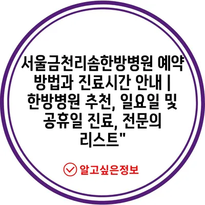 ✅ 서울금천리솜한방병원의 진료시간과 예약 방법을 자세히 알아보세요.