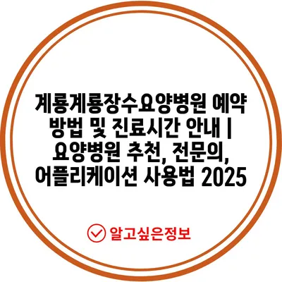계룡계룡장수요양병원 예약 방법 및 진료시간 안내 | 요양병원 추천, 전문의, 어플리케이션 사용법 2025