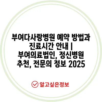 부여다사랑병원 예약 방법과 진료시간 공지 | 부여의료법인, 정신병원 추천, 전연락 정보 2025에 대해 자주 묻는 질문 TOP 5