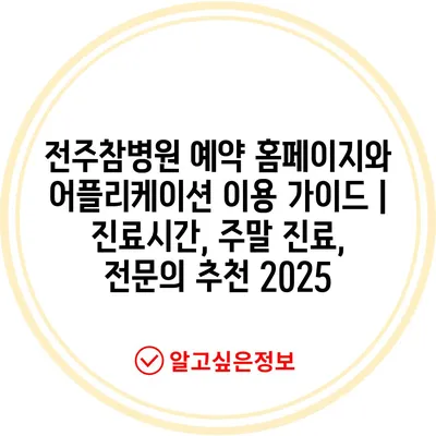 전주참병원 예약 홈페이지와 어플리케이션 이용 가이드 | 진료시간, 주말 진료, 전문의 추천 2025