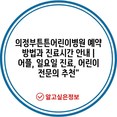 의정부튼튼어린이병원 예약 방법과 진료시간 안내 | 어플, 일요일 진료, 어린이 전문의 추천”