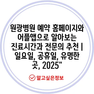 원광병원 예약 홈페이지와 어플앱으로 알아보는 진료시간과 전연락 추천 | 일요일, 공휴일, 유명한 곳, 2025에 대해 알아보겠습니다.