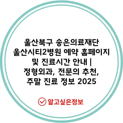 울산북구 송은의료재단 울산시티2병원 예약 홈페이지 및 진료시간 안내 | 정형외과, 전문의 추천, 주말 진료 정보 2025