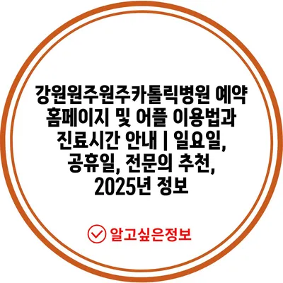 강원원주원주카톨릭병원 예약 홈페이지 및 어플 이용법과 진료시간 안내 | 일요일, 공휴일, 전문의 추천, 2025년 정보