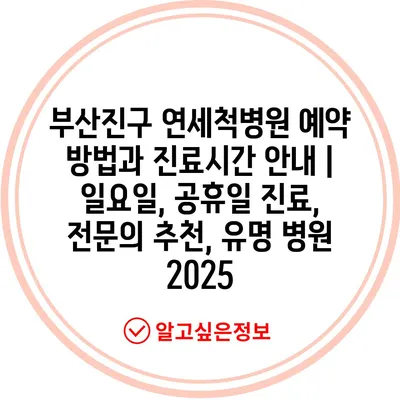 부산진구 연세척병원 예약 방법과 진료시간 안내 | 일요일, 공휴일 진료, 전문의 추천, 유명 병원 2025