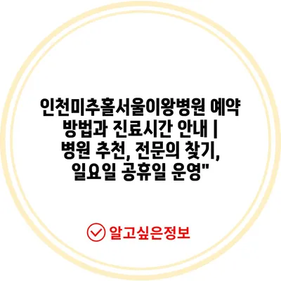인천미추홀서울이왕병원 예약 방법과 진료시간 안내 | 병원 추천, 전문의 찾기, 일요일 공휴일 운영”