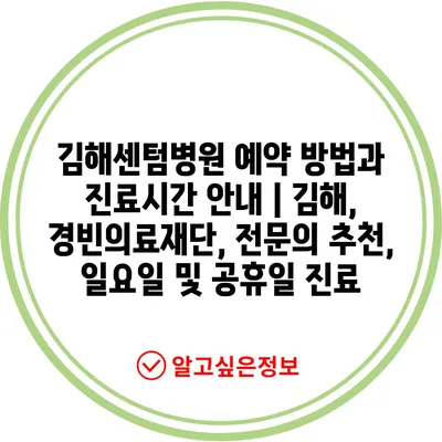 김해센텀병원 예약 방법과 진료시간 안내 | 김해, 경빈의료재단, 전문의 추천, 일요일 및 공휴일 진료