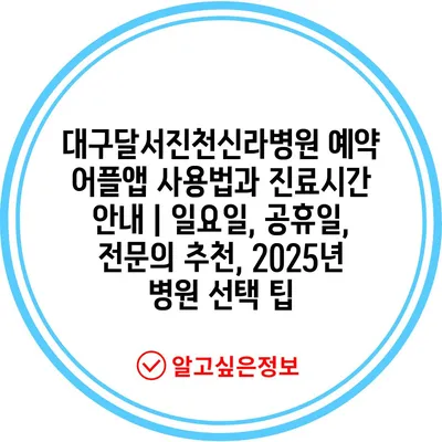 대구달서진천신라병원 예약 어플앱 사용법과 진료시간 안내 | 일요일, 공휴일, 전문의 추천, 2025년 병원 선택 팁