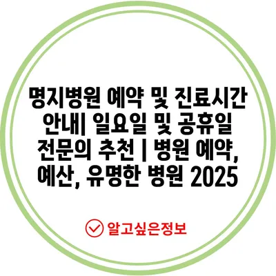 명지병원 예약 및 진료시간 안내| 일요일 및 공휴일 전문의 추천 | 병원 예약, 예산, 유명한 병원 2025
