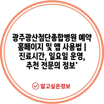 광주광산첨단종합병원 예약 홈페이지 및 앱 사용법 | 진료시간, 일요일 운영, 추천 전문의 정보’