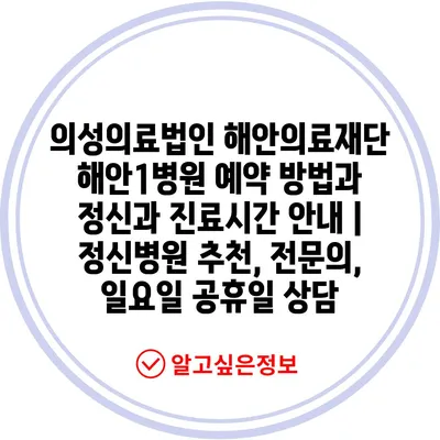 의성의료법인 해안의료재단 해안1병원 예약 방법과 정신과 진료시간 안내 | 정신병원 추천, 전문의, 일요일 공휴일 상담