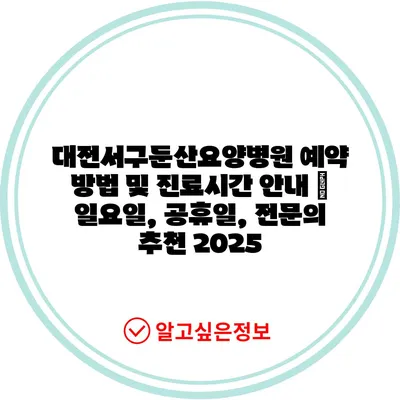 대전서구둔산요양병원 예약 방법 및 진료시간 안내 | 일요일, 공휴일, 전문의 추천 2025