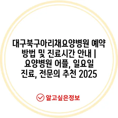 대구북구아리채요양병원 예약 방법 및 진료시간 안내 | 요양병원 어플, 일요일 진료, 전문의 추천 2025