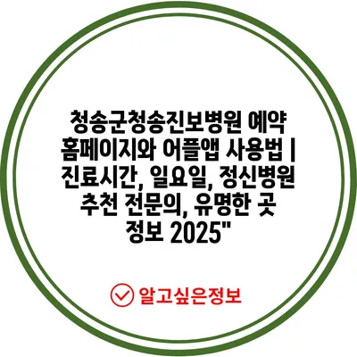 청송군청송진보병원 예약 홈페이지와 어플앱 사용법 | 진료시간, 일요일, 정신병원 추천 전문의, 유명한 곳 정보 2025″