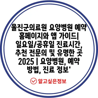 울진군의료원 요양병원 예약 홈페이지와 앱 가이드| 일요일/공휴일 진료시간, 추천 전문의 및 유명한 곳 2025 | 요양병원, 예약 방법, 진료 정보’