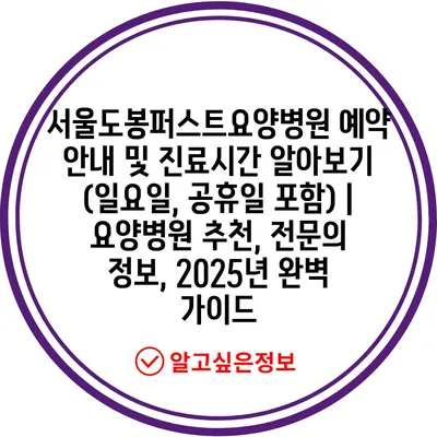 서울도봉퍼스트요양병원 예약 안내 및 진료시간 알아보기 (일요일, 공휴일 포함) | 요양병원 추천, 전문의 정보, 2025년 완벽 가이드