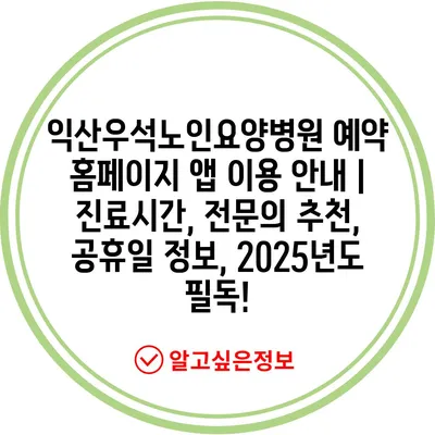 익산우석노인요양병원 예약 홈페이지 앱 이용 안내 | 진료시간, 전문의 추천, 공휴일 정보, 2025년도 필독!