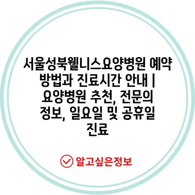 서울성북웰니스요양병원 예약 방법과 진료시간 안내 | 요양병원 추천, 전문의 정보, 일요일 및 공휴일 진료