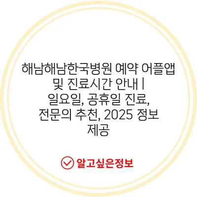 해남해남한국병원 예약 어플앱 및 진료시간 안내 | 일요일, 공휴일 진료, 전문의 추천, 2025 정보 제공